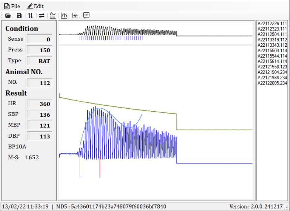 - 实时脉波监测、自动保存动物信息、原始波形及测量结果。